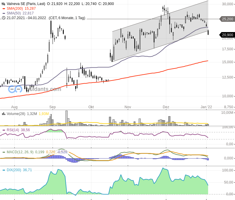 Es bleibt wie es ist: Börse ist Zukunft – die Anleger kaufen Hoffnungen, Erwartungen und Phantasie. Fehlt diese jedoch, so dreht in der Regel die Stimmung. Wie aktuell bei der Valneva-Aktie. Allgemein sind Impfstoff-Aktien, die gut gelaufen sind, derzeit auf der Verliererseite. Denn trotz der hohen und ansteigenden Fallzahlen in den USA oder Europa, besteht die Chance, dass die Omikron-Welle die letzte Welle des Corona-Virus sind könnte.